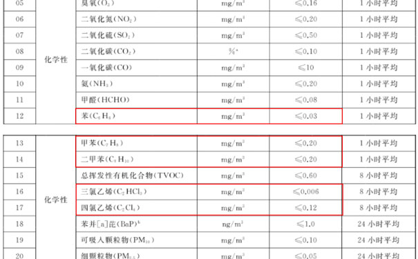 一:新標(biāo)準(zhǔn)增加了三氯乙烯、四氯乙烯兩個參數(shù),提出了限值要求,并且降低了苯的濃度限值。